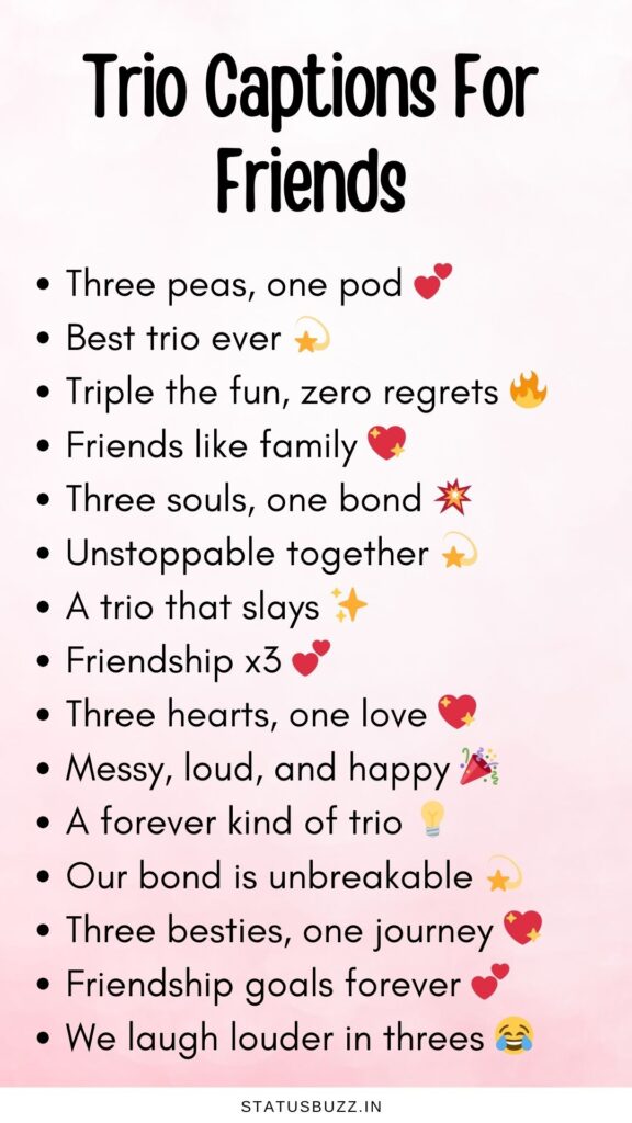 Having two best friends makes life more fun and exciting. A trio shares endless laughter, unforgettable moments, and strong support. Whether you are posting a selfie, a fun trip, or just a random moment, the right caption makes your Instagram post even better.